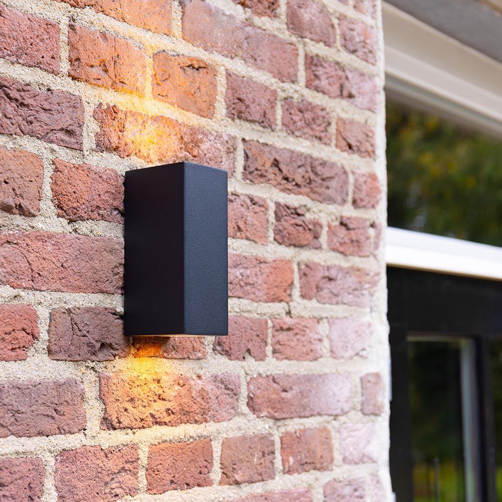2x LED-Wandleuchte Selma Schwarz - Dimmbar - 8 watt 690 lumen - 2700K warmweiß - GU10 - Up & Down Licht - IP65 Wasserdicht - Inkl. Dimmer mit Fernbedienung - Gartenbeleuchtung