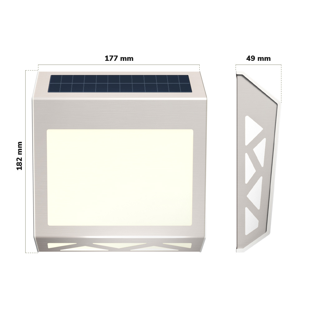 Numa - LED Solar Hausnummer - Wandleuchte - 3000K warmweiß - 40 Lumen - Dämmerungsschalter - Polykristallines Solarpanel - IP65 - Silber - Solar-Hausnummerbeleuchtung
