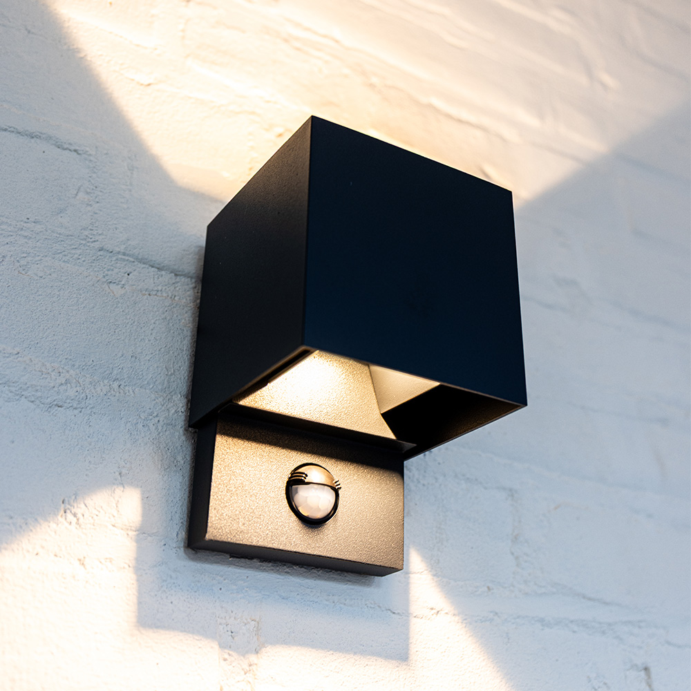 Kansas LED-Wandleuchte mit PIR-Sensor - Anthrazit - IP65 - 3000K warmweiß - Innen- und Außenbereich - Up & Down Light - Würfel