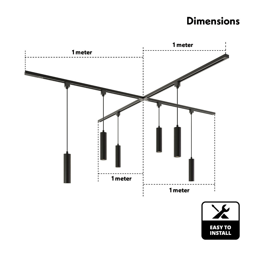 Taros Kit système de rails - Forme en X - 4 rails de 1 m - 6 spots suspendus - 2700K GU10 inclus - IP20 - Modulaire - 230 V