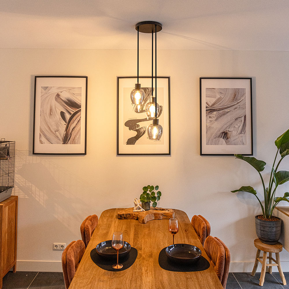 Zora - Suspension LED en verre fumé - 3 lumières - E27 - Noir