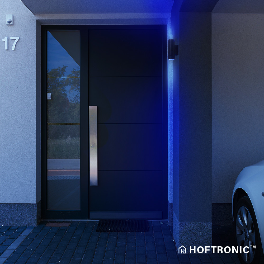 Verbind de wandlamp met de HOFTRONIC app voor geofencing, stembesturing, groeperen, 16,5M kleuren, schemerschakelaar, bioritme en traploos dimmen.