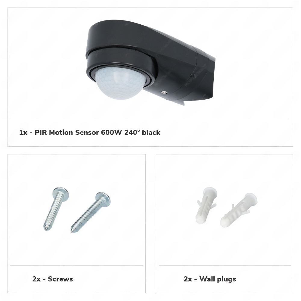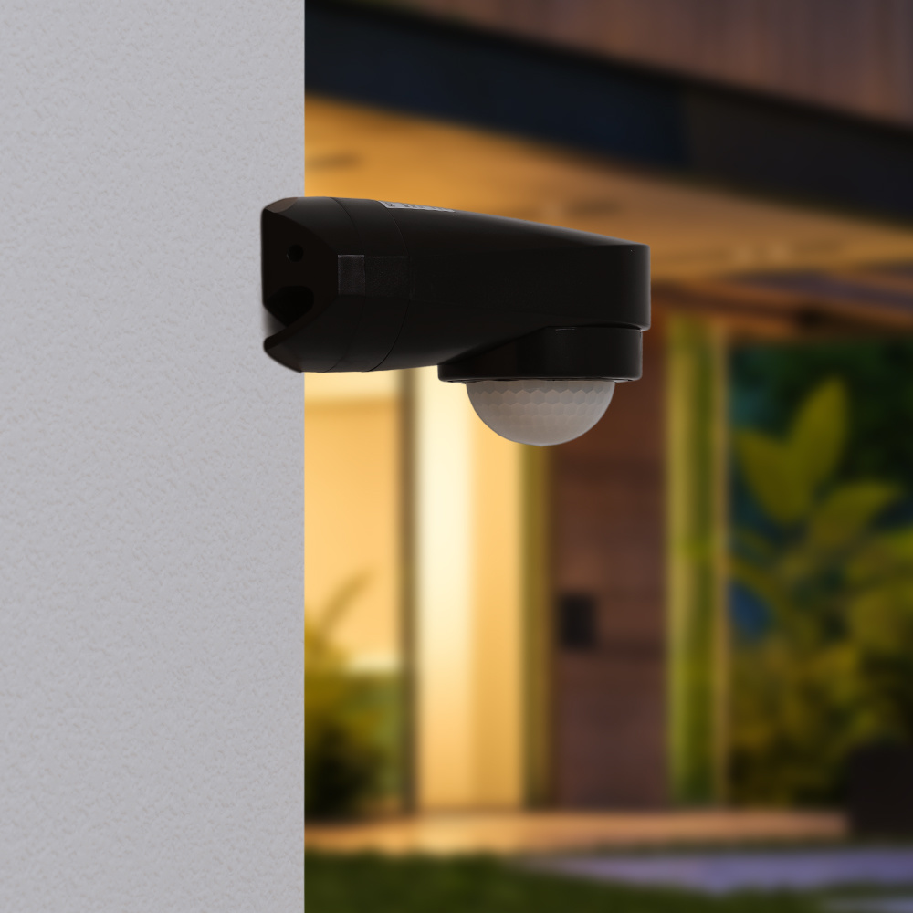 PIR bewegingssensor met schemerschakelaar - 240° - Opbouw - 10 meter bereik - Maximaal 600 Watt - IP65 waterdicht - zwart