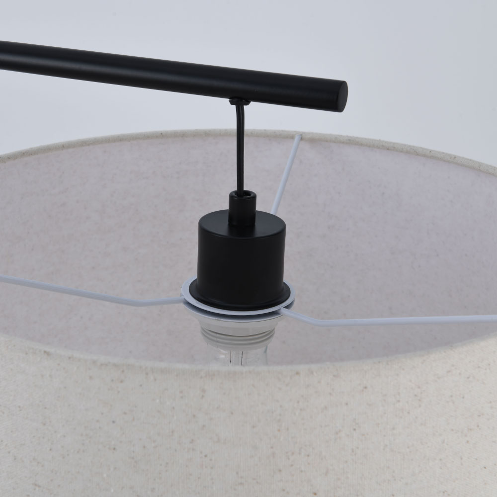 Das schwarze Gestell und der Sockel bilden einen eleganten und stabilen Kontrast zur Sanftheit des Schirms. Sie ergänzen das Gesamtbild und verleihen der Leuchte einen Hauch von Luxus. Die Kombination aus Metall und Stoff schafft ein harmonisches Gleichgewicht zwischen Textur und Weichheit und verleiht der Delion eine moderne und zugleich warme Ausstrahlung.