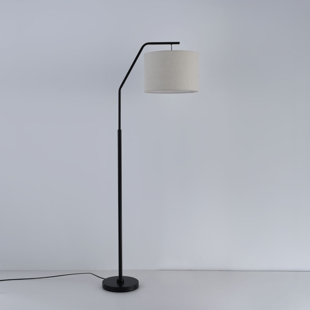 Die schwarze Stehleuchte Delion nero besticht durch ihr offenes Design. Der Leinenschirm hängt frei an einem schlanken Metallgestell und scheint sanft im Raum zu schweben. Diese Konstruktion verleiht der Leuchte eine leichte, moderne Optik und lenkt gleichzeitig den Fokus klar auf Form und Material.