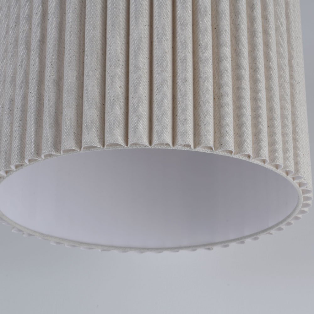 Der Schirm ist aus Leinen gefertigt, einem Stoff, der für seine natürliche Optik und sein sanftes Licht bekannt ist. Das Leinen filtert das Licht warm und gleichmäßig und erzeugt so ein ruhiges, stimmungsvolles Licht, das sich angenehm für den Alltag eignet.