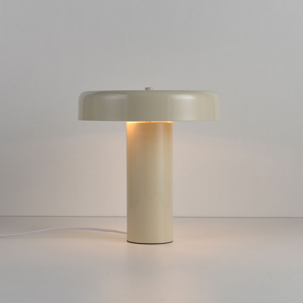 Die Tischleuchte Arcene crema in Cremeweiß ist eine raffinierte Interpretation klassischen Designs mit Vintage-Einflüssen. Der charakteristische, flache Schirm verleiht der Leuchte eine grafische, pilzförmige Silhouette und setzt in jedem Raum einen markanten Akzent.