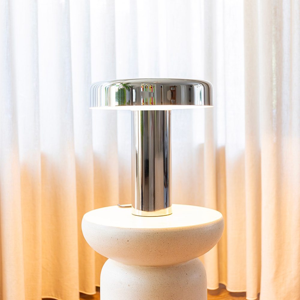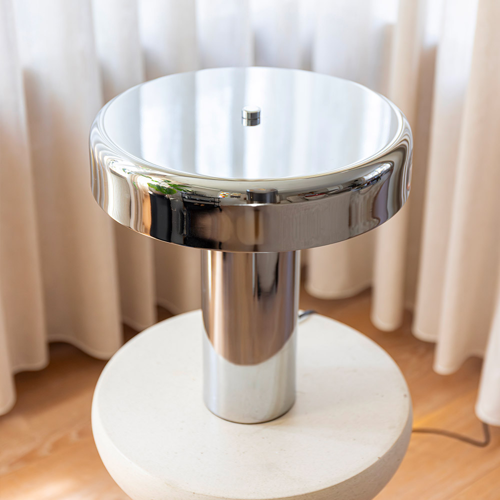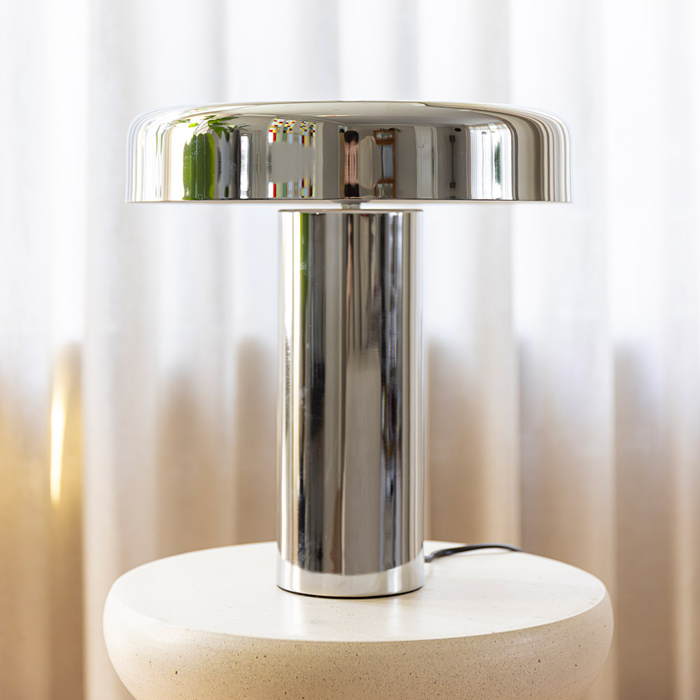 Lampe de table Arcena cromo - Lampe champignon chromée en métal pour l'intérieur - Sans ampoule