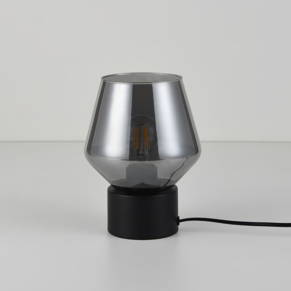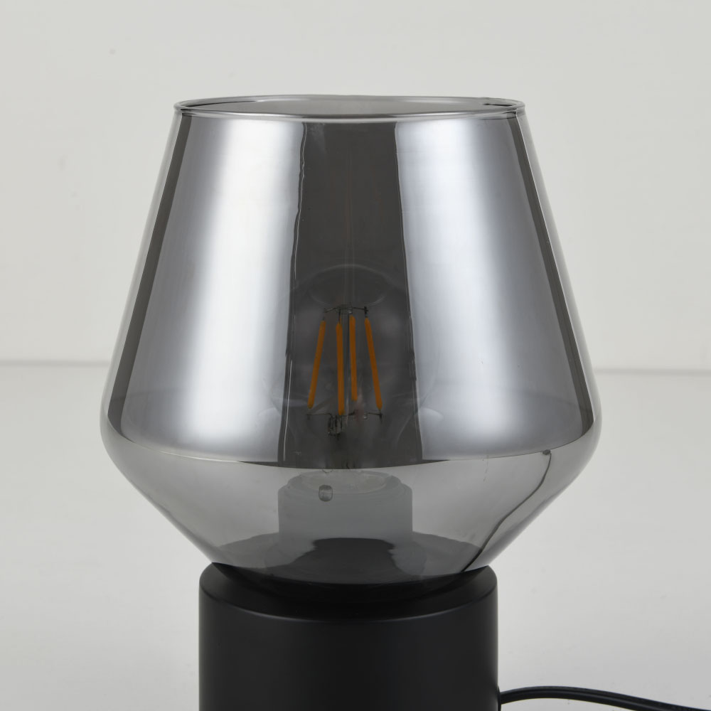 Lampe de table Aureta nero - Douille E27 - Abat-jour en verre fumé - Pied en métal noir - IP20 pour utilisation à l'intérieur
