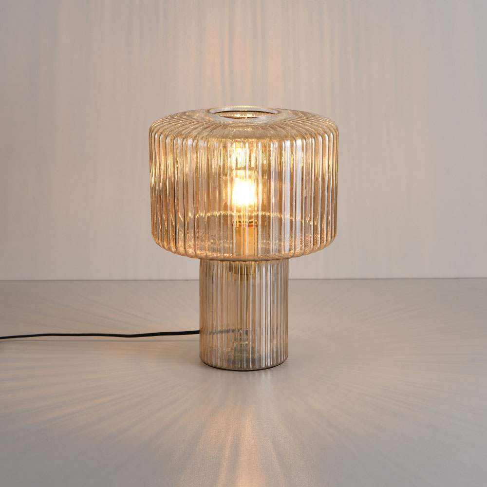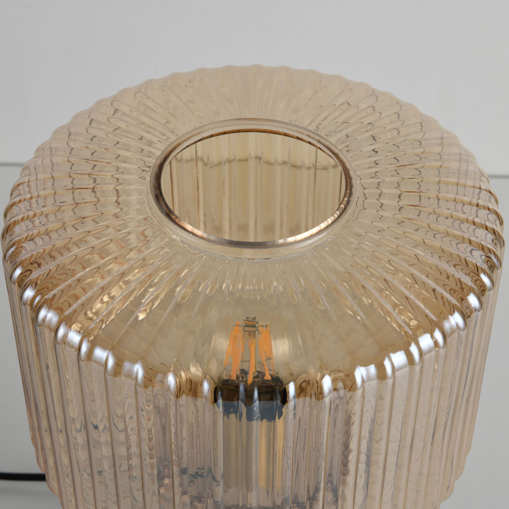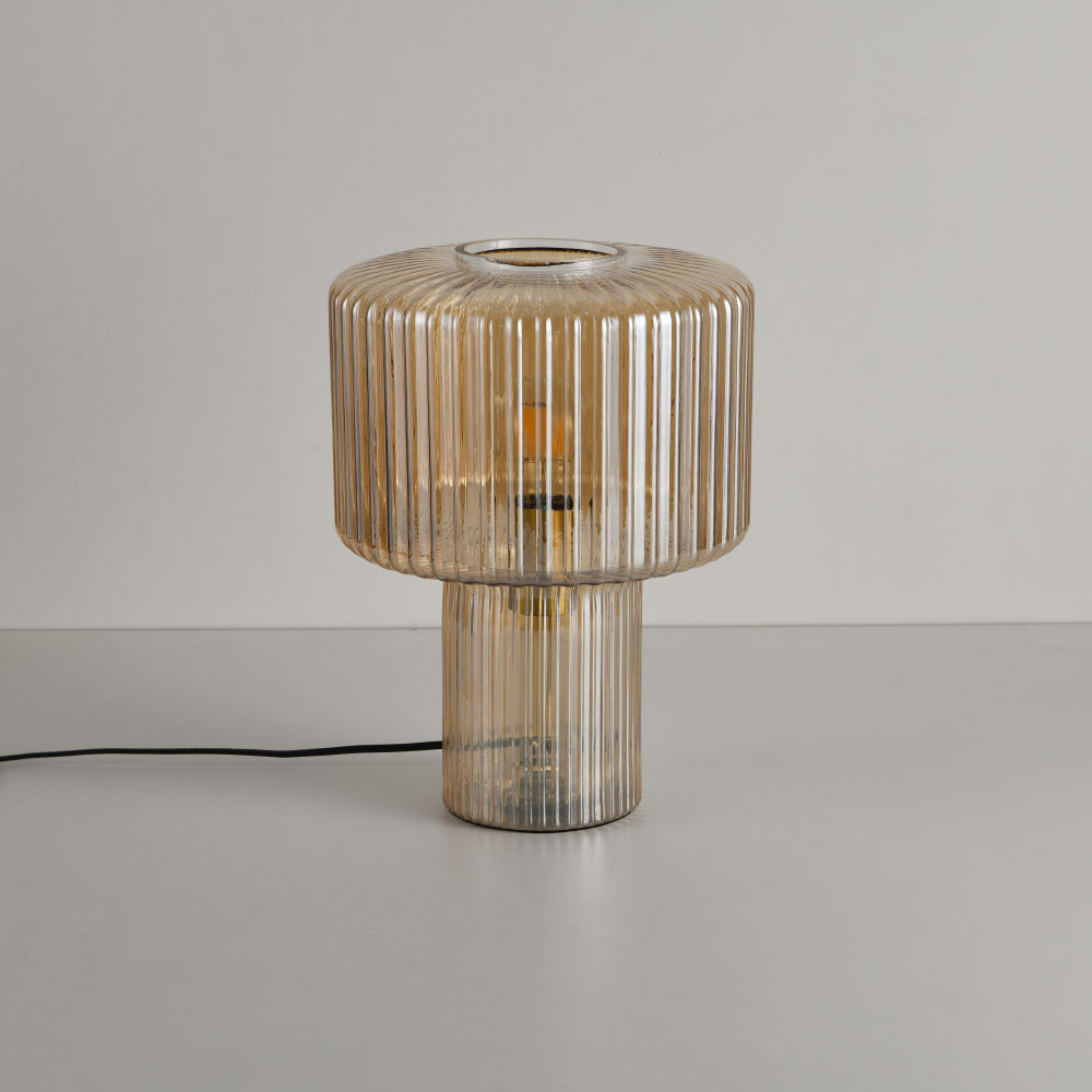 Lampe de table Ferano ambra - Douille E27 - 25 W - Entièrement en verre strié - IP20 pour utilisation à l'intérieur