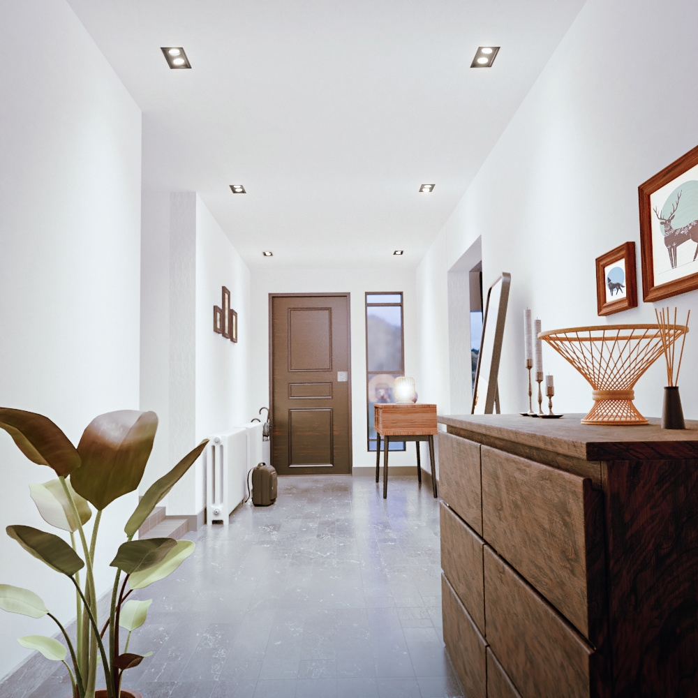 Le spot encastrable est doté d’un revêtement en poudre noire AKZO-Nobel, résistant aux UV et à l’humidité. Il protège contre la décoloration et l’écaillage, même en cas d’exposition prolongée.