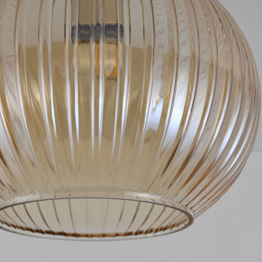 Le verre ambré colore la lumière et dégage de la chaleur, créant ainsi une lueur accueillante. La lumière n'est pas diffusée de manière intense, mais filtrée et enveloppée par la teinte du verre. Cela rend la lampe particulièrement adaptée aux pièces où l'ambiance et le confort sont essentiels, comme le salon, la chambre à coucher ou un hall calme.