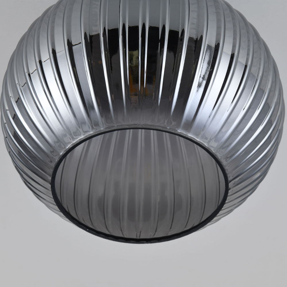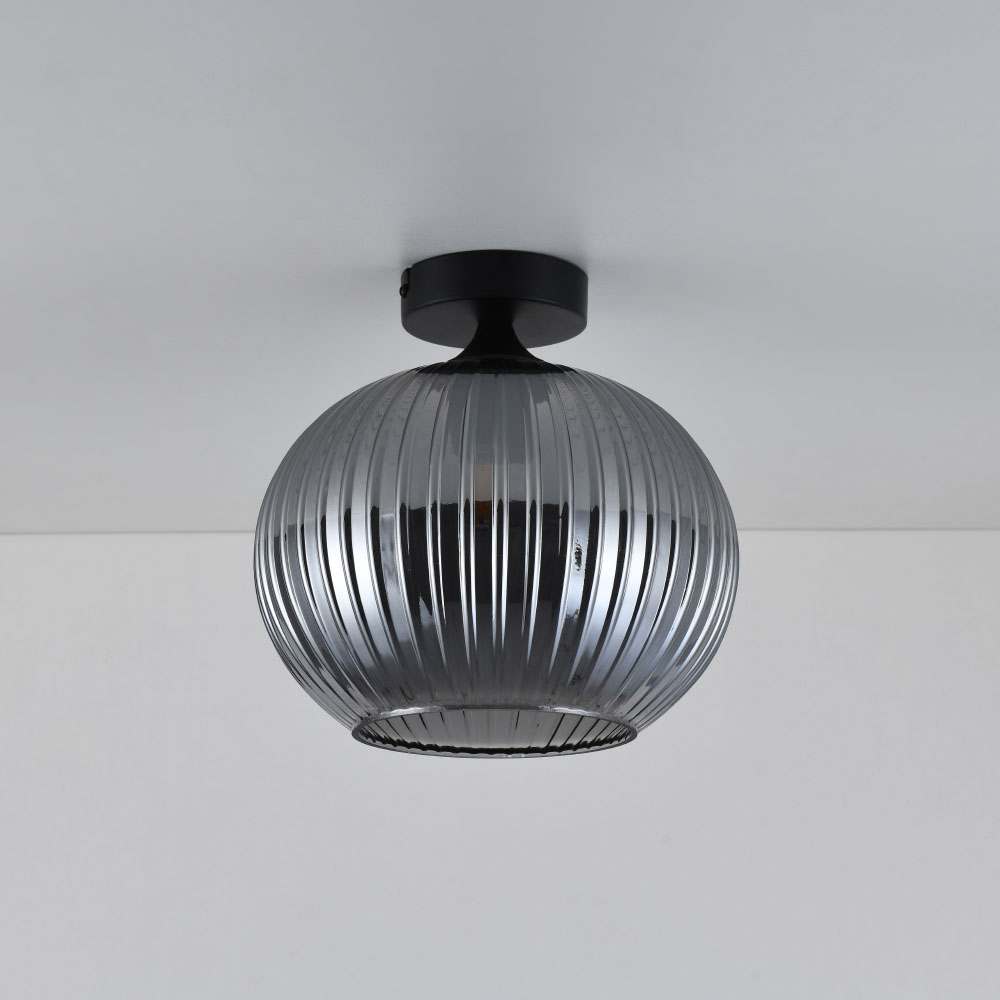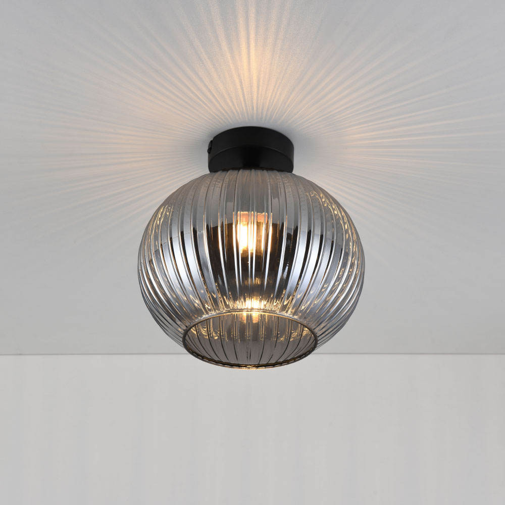 Plafonnier Globo vetro fumé - Sphère en verre fumé strié - Support noir