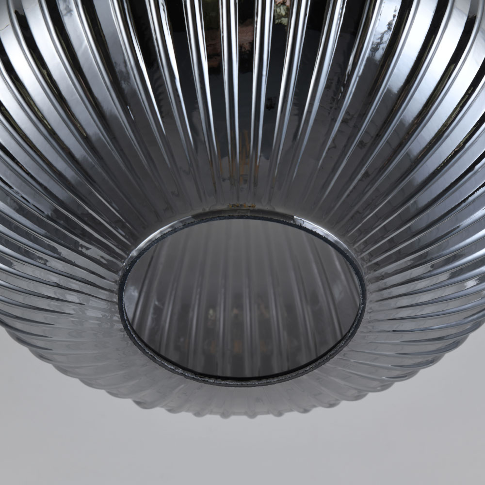 Plafonnier Ovale vetro fumé - Sphère en verre fumé strié - Support noir