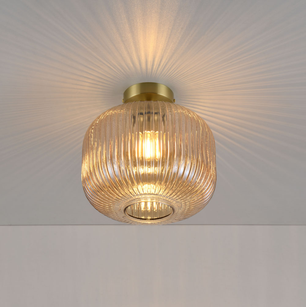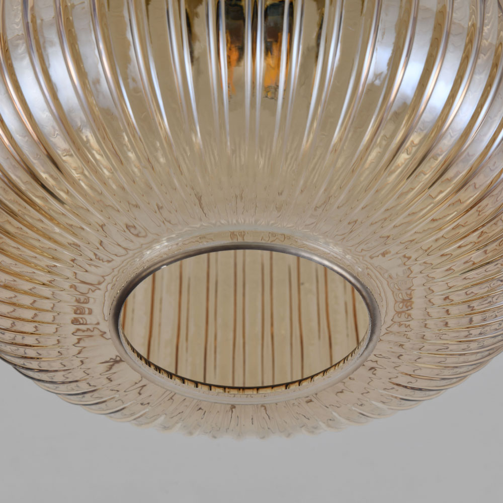Plafonnier Virello ambra - Sphère en verre ambré strié - Support doré