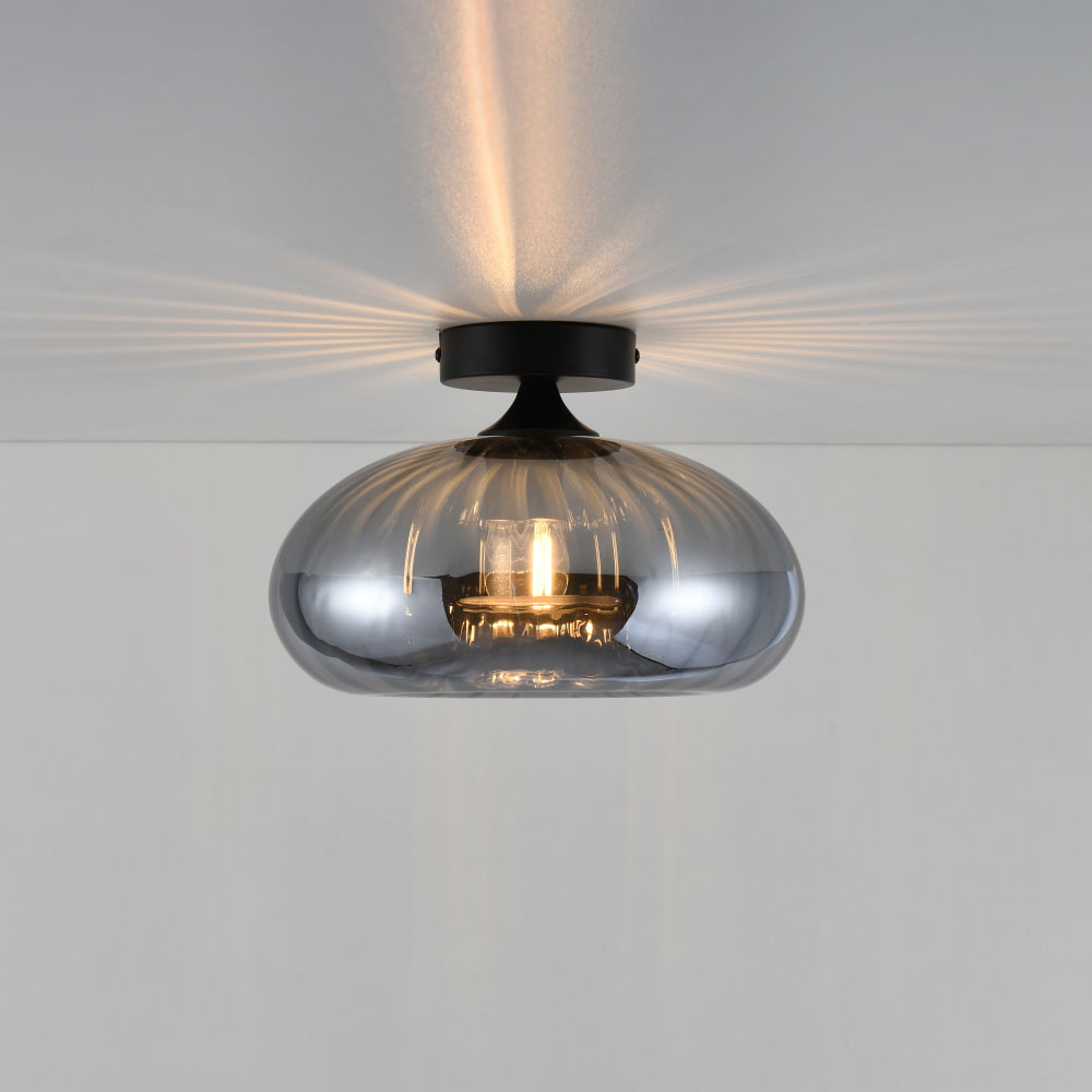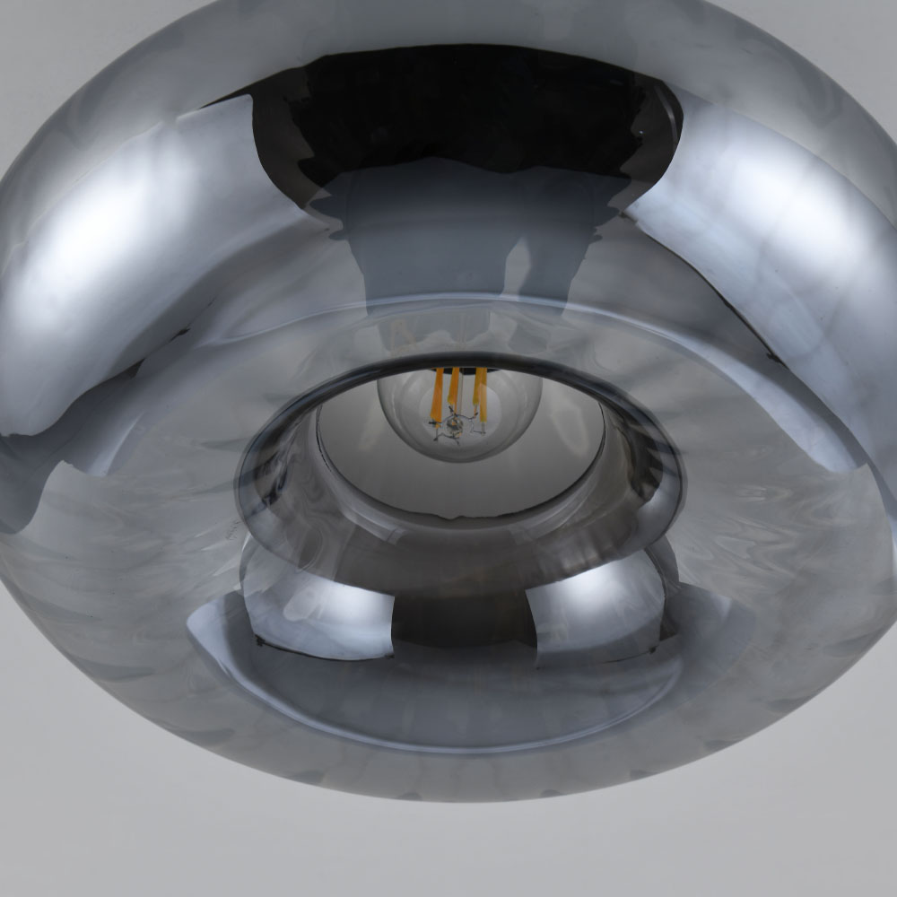 Le verre fumé filtre la lumière et crée une lueur chaude et discrète. Au lieu de briller intensément vers le bas, la lumière se diffuse doucement dans la pièce. Ce plafonnier est donc idéal dans les pièces où l'ambiance est importante, mais où vous souhaitez conserver un éclairage suffisant.