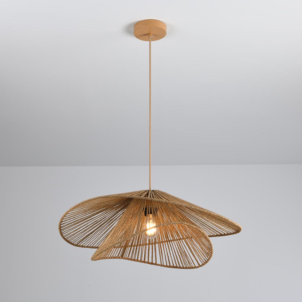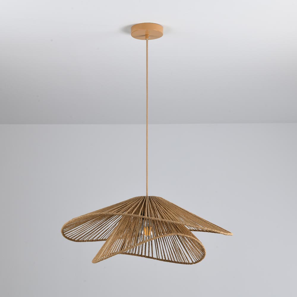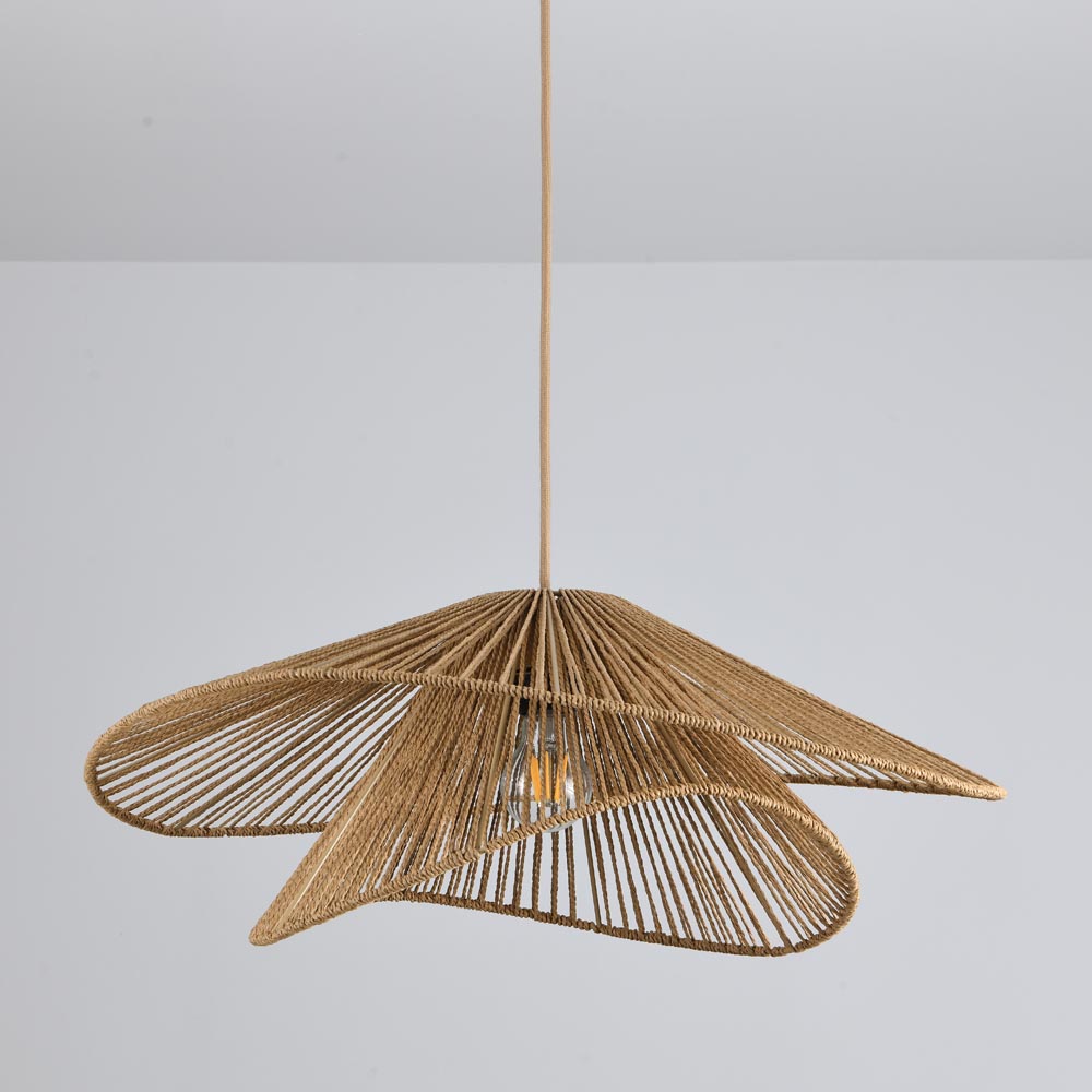 Cette version plus petite, en marron naturel, de l'Avanta dégage chaleur et élégance. L'aspect rotin du cordon en papier s'accorde parfaitement avec un intérieur bohème, apportant douceur et texture à l'espace et créant une atmosphère décontractée, presque méditerranéenne. Le design à deux niveaux renforce ce caractère accueillant : le double abat-jour apporte profondeur et nuance à la lumière, sublimant ainsi la lampe.