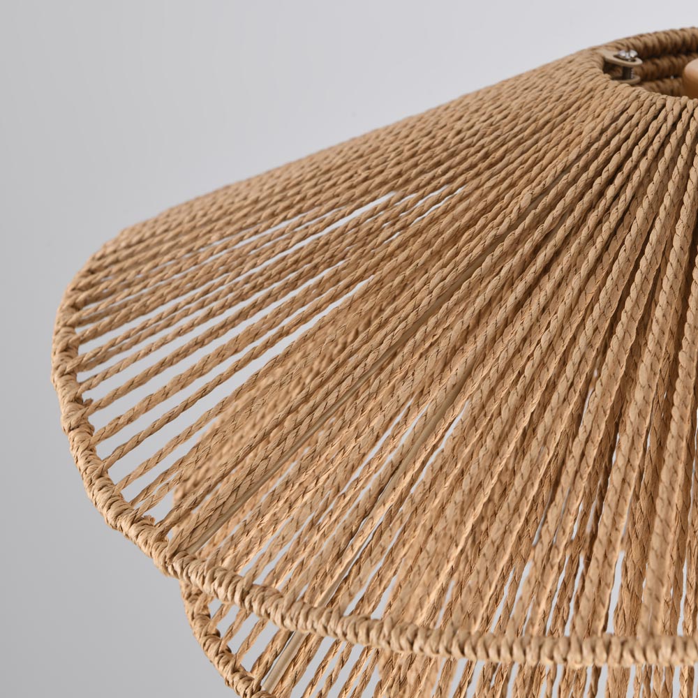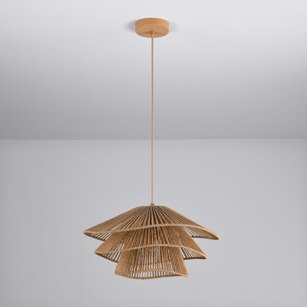 Cette version plus petite, en marron naturel, de l'Avanta dégage chaleur et élégance. L'aspect rotin du cordon en papier s'accorde parfaitement avec un intérieur bohème, apportant douceur et texture à l'espace et créant une atmosphère décontractée, presque méditerranéenne. Le design à trois niveaux renforce ce caractère accueillant : le triple abat-jour apporte profondeur et nuance à la lumière, sublimant ainsi la lampe.