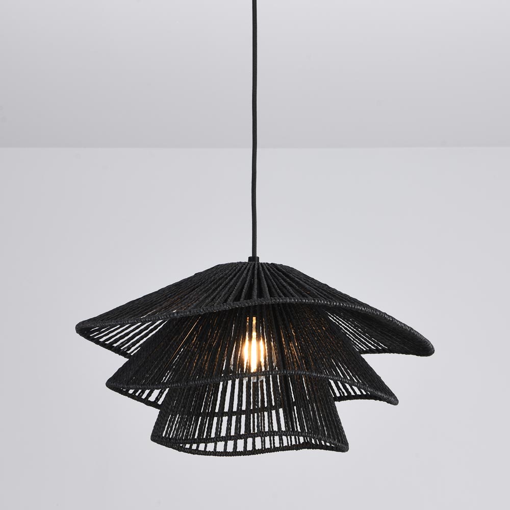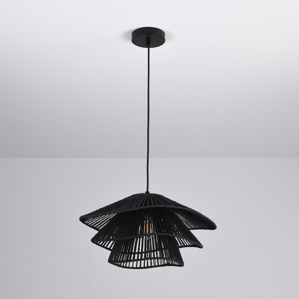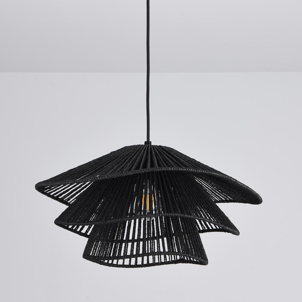 Suspension Avanta nero tre - Noir - Douille E27 - IP20 pour utilisation à l'intérieur - Cordon en papier tressé - Trois couches
