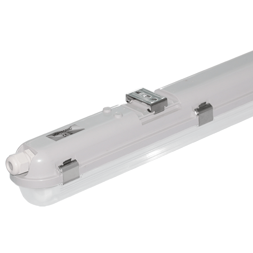 Diese IP-Klassifizierung macht diese LED-Leuchtstofflampe für alle nassen und trockenen Bereiche geeignet. Denk an Kühlräume, Werkstätten, Lagerhäuser, Fabrikhallen und Lagerbereiche im Außenbereich.