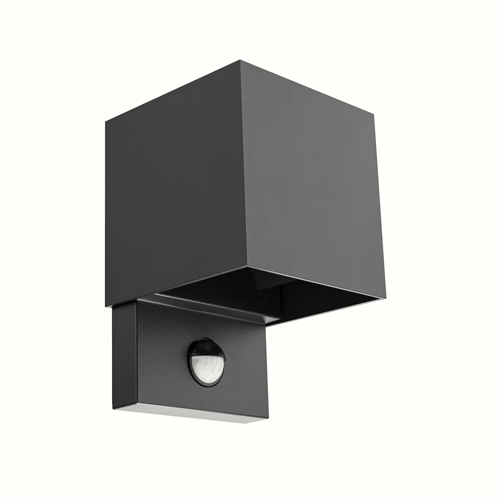 Set mit 2 Kansas LED-Wandleuchten mit PIR-Sensor - IP65 - 3000K warmweiß - 7 Watt - Up & Down-Licht - Würfel - Für außen und innen - Schwarz