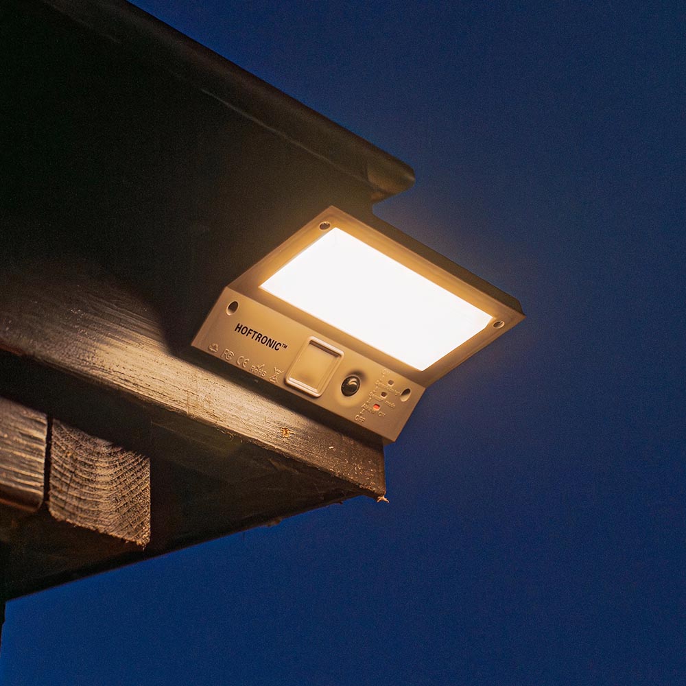 Die solarbetriebene Wandleuchte reagiert auf Bewegung. Je nach eingestelltem Lichtmodus wird die Lampe heller oder leuchtet, wenn sie eine Bewegung erkennt.