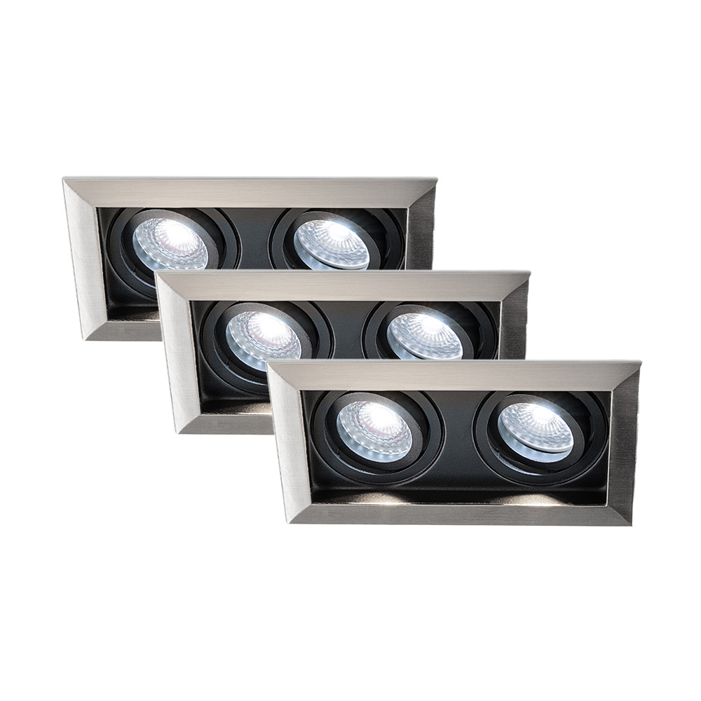 3er-Set Durham - LED Einbaustrahler - Schwenkbar - 8 Watt 690 Lumen - 6500K tageslichtweiß - Doppelt - GU10 - Dimmbar - Rechteckig - IP20 für Innenbereich - Edelstahl