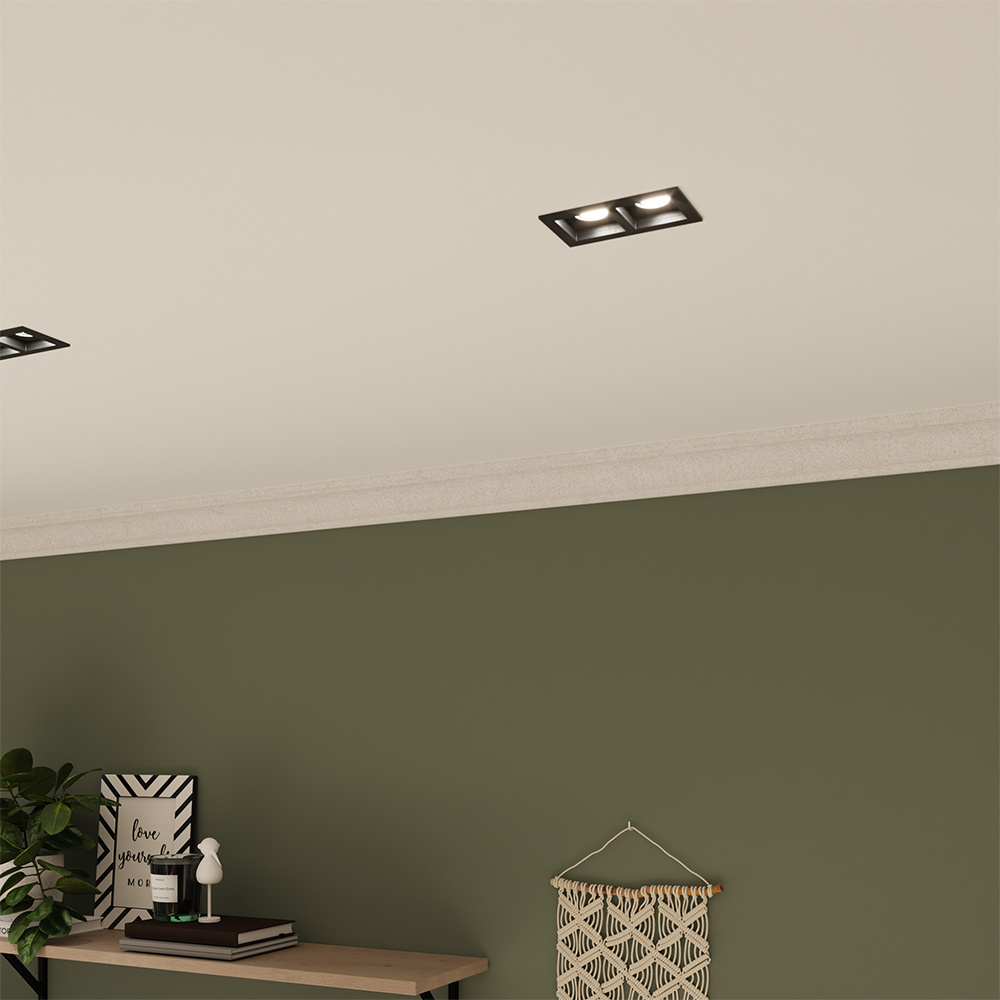3er Set Fresno Einbaustrahler - Rechteck - 2x GU10 - 6500K tageslichtweiß - 8 Watt 690 Lumen - Schwenkbar - IP20 staubdicht- Schwarz