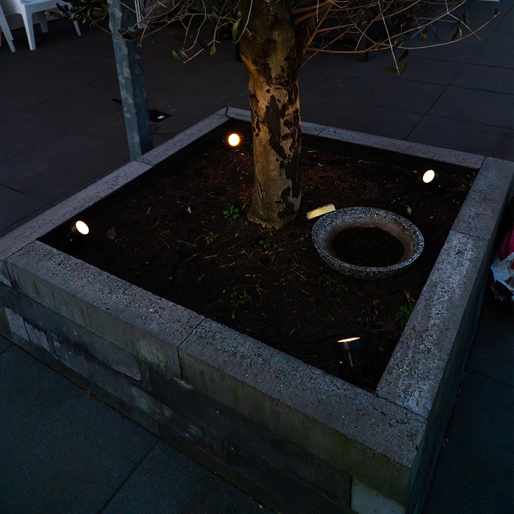 Da die Strahler schwenkbar sind, können Sie ganz einfach die schönsten Lichtakzente in Ihrem Garten setzen. Denken Sie an die Beleuchtung eines Baumes, eines Strauches, einer Pflanze oder einer Fassade.