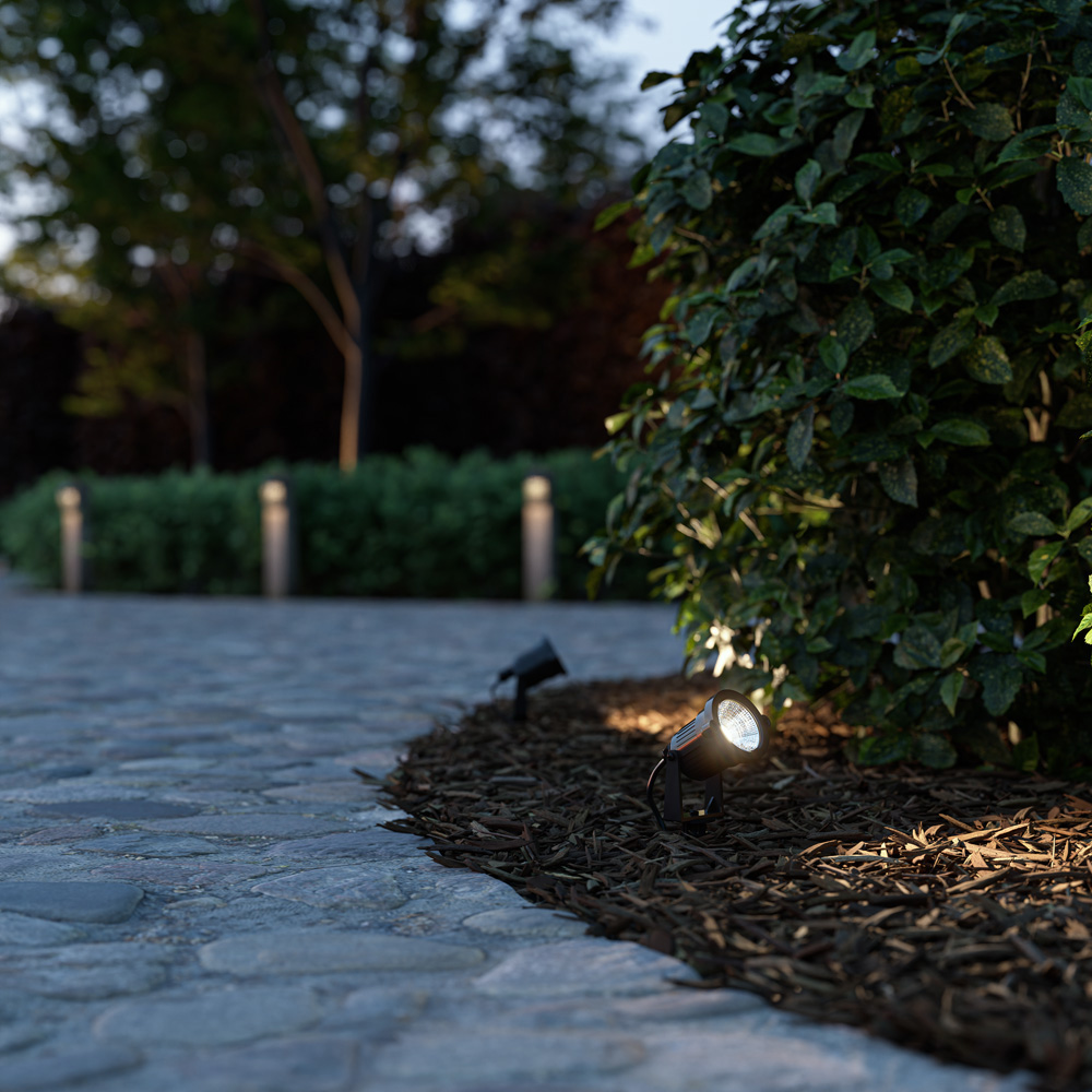 Da diese Gartenstrahler voll verstellbar sind, können Sie präzise Lichtakzente setzen. Denken Sie an die Beleuchtung eines Baumes, eines Strauches, einer Pflanze oder eines Zaunes.