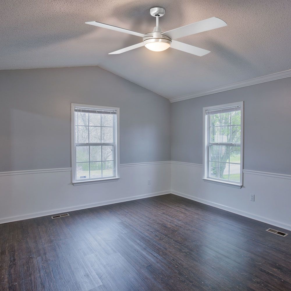 Entscheide selbst, wie dieser Deckenventilator aussehen soll. Wähle zwischen einer Holz- oder Stahloptik, damit er am besten zu deinem Interieur passt, und wähle die wendbaren MDF-Platten.