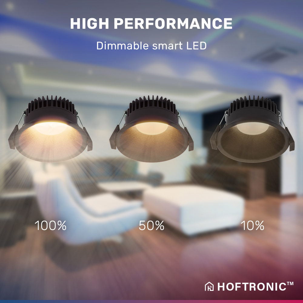 Verbinden Sie den Einbaustrahler mit der HOFTRONIC-App für Geofencing, Sprachsteuerung, Gruppierung, Wettersteuerung, 16,5M Farben, Biorhythmus und Dimmen.