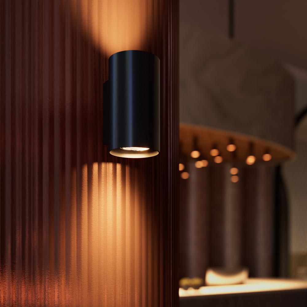Giove nero - Zylindrische Wandleuchte mit mattschwarzer Beschichtung - Up- und Downlight