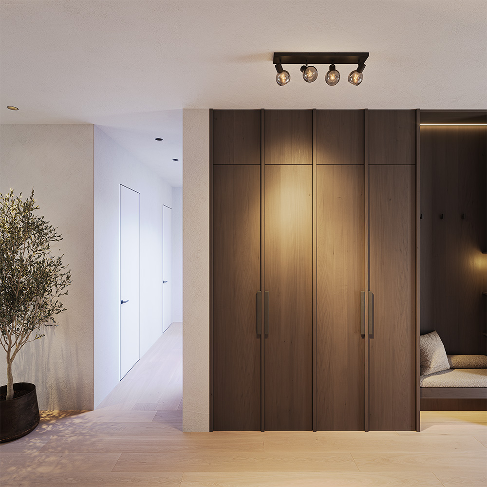 Die klare Linienführung verleiht dem Aufbaustrahler ein modernes Erscheinungsbild. Das Ergebnis ist ein zeitloses Design, das zu fast jedem Einrichtungsstil passt.
