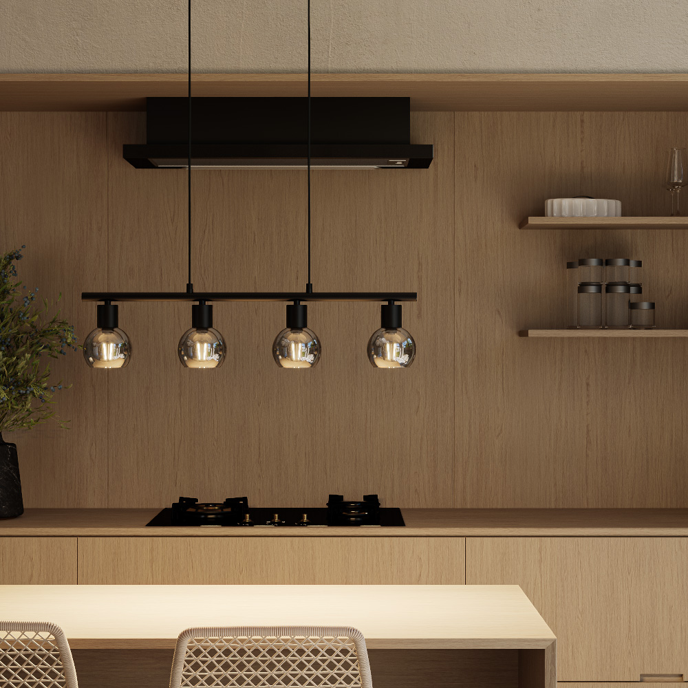 Glazura - LED-Hängelampe 4-flammig - Rauchglas - Schwarz - E14 Fassungen