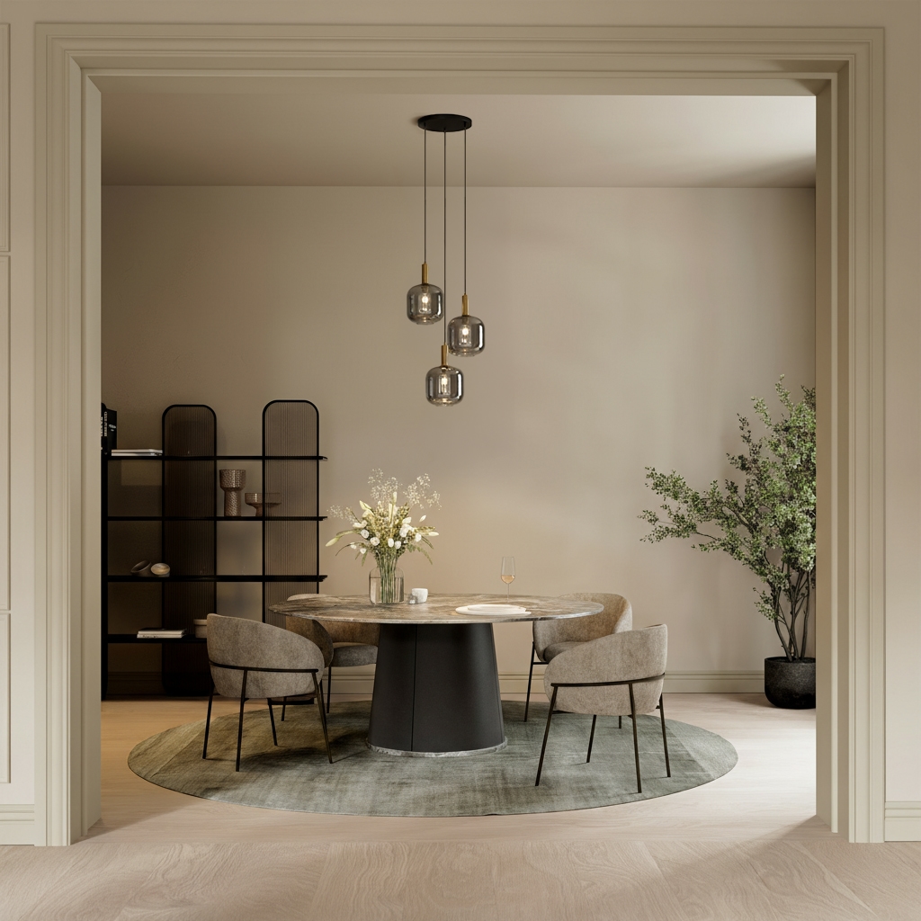 Diese Lampe eignet sich ideal über dem Esstisch, wo sie den Raum auf einen Blick definiert, oder im Wohnzimmer als eleganter Akzent, der das Licht auf subtile Weise verteilt und so für Atmosphäre sorgt. Aber auch in einem Flur oder im Büro kann sie eine luxuriöse, warme Ausstrahlung verleihen.