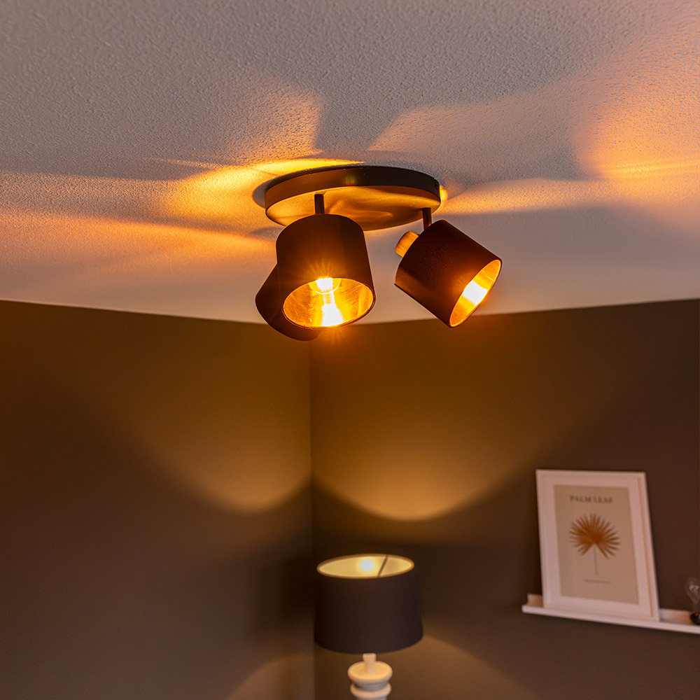 Jimmy LED-Deckenstrahler - 3 Spots - Neigbar - Drehbar - Schwarz/Gold - E14 Fassung - IP20