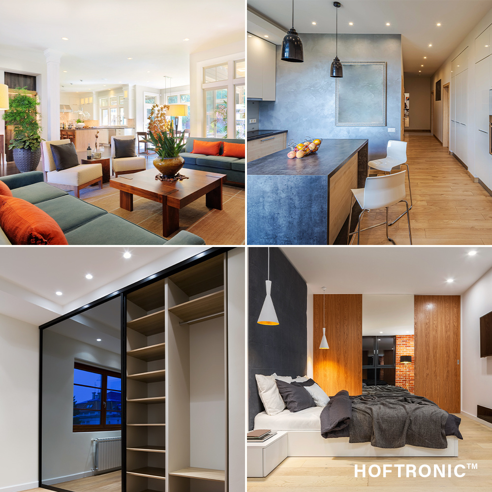 Ein Einbaustrahler verleiht ein luxuriöses Aussehen, ohne dass man stuckieren muss, und erzeugt einen Stuckspot-Effekt. Die Einbaustrahler blenden dadurch auch nicht.