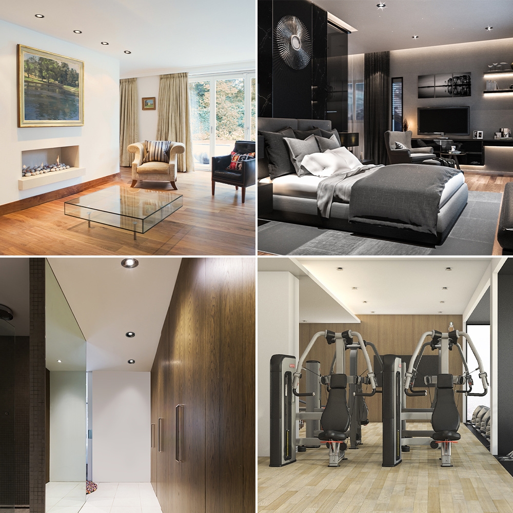 Ein Einbaustrahler verleiht ein luxuriöses Aussehen, ohne dass man stuckieren muss, und erzeugt einen Stuckspot-Effekt. Die Einbaustrahler blenden dadurch auch nicht.