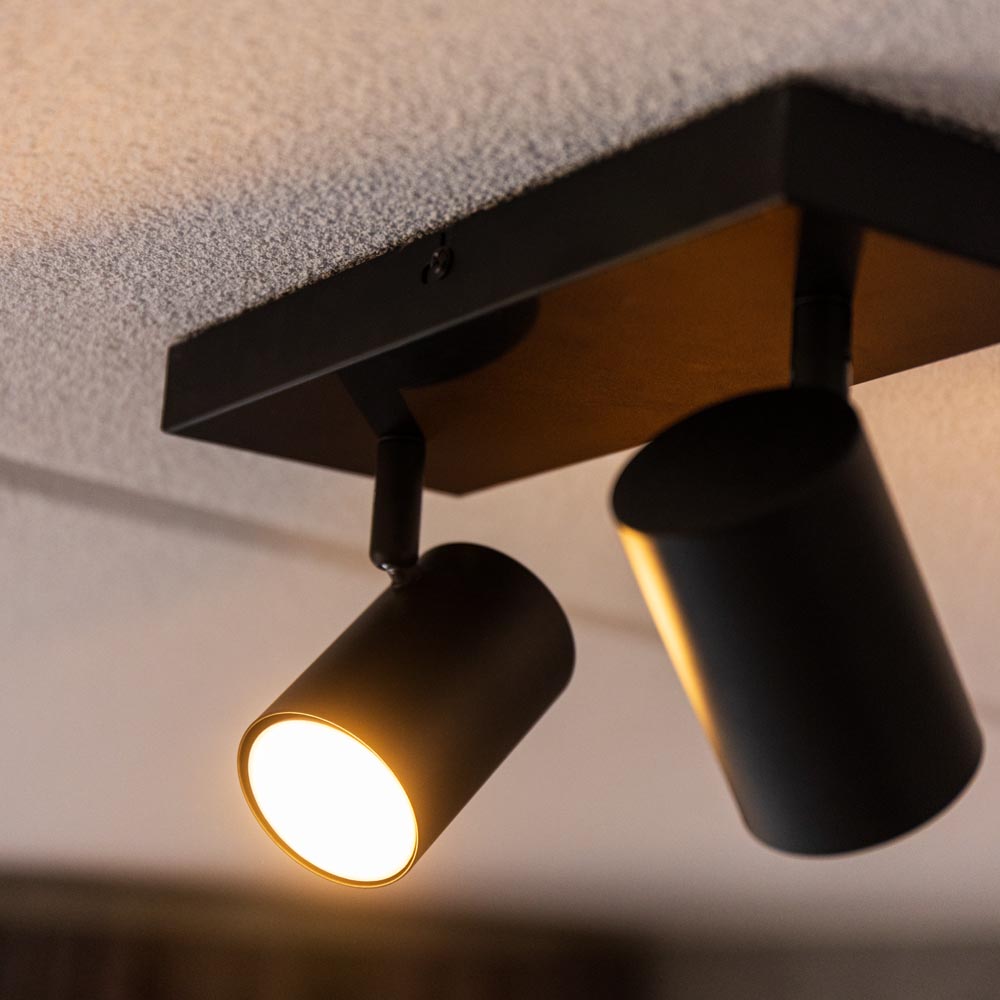 Diese Deckenleuchte hat eine GU10 Fassung und ist für alle GU10 Leuchtmittel geeignet. So können Sie jederzeit den Abstrahlwinkel, die Lichtfarbe und die Lichtleistung wählen.