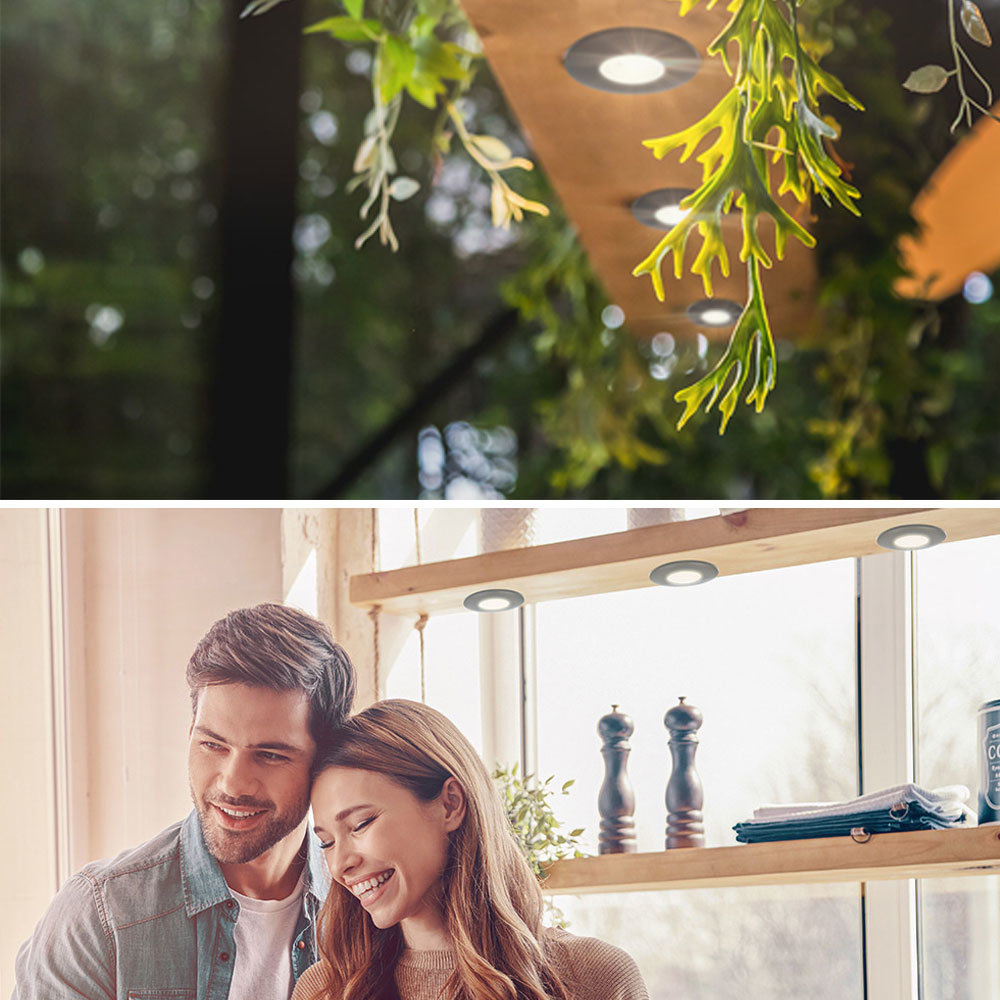 Diese IP-Einstufung stellt sicher, dass die Strahler nicht durch Feuchtigkeit ausfallen. Geeignet für nasse und trockene Bereiche. Perfekt für Küche, Bad und Veranda.