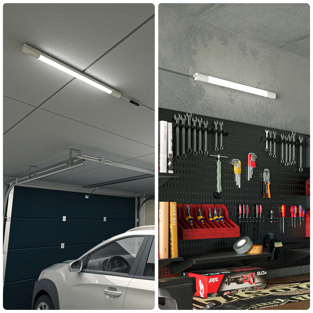 Diese LED-Leuchtstofflampe strahlt ein tageslichtweißes Licht von 6500 Grad Kelvin aus. Diese Lichtfarbe ist sehr gut für die Beleuchtung von Werkstätten, Garagen und Schuppen geeignet. Da die LED-Leuchtstofflampe ein völlig flimmerfreies Licht ausstrahlt, eignet sie sich auch für die Beleuchtung von professionellen Werkstätten wie Lagerhallen und Fabriken. Mit der LED-Leuchtstofflampe erhältst du Montageclips und Schrauben, mit denen du die Lampe leicht an jeder Oberfläche befestigen kannst.