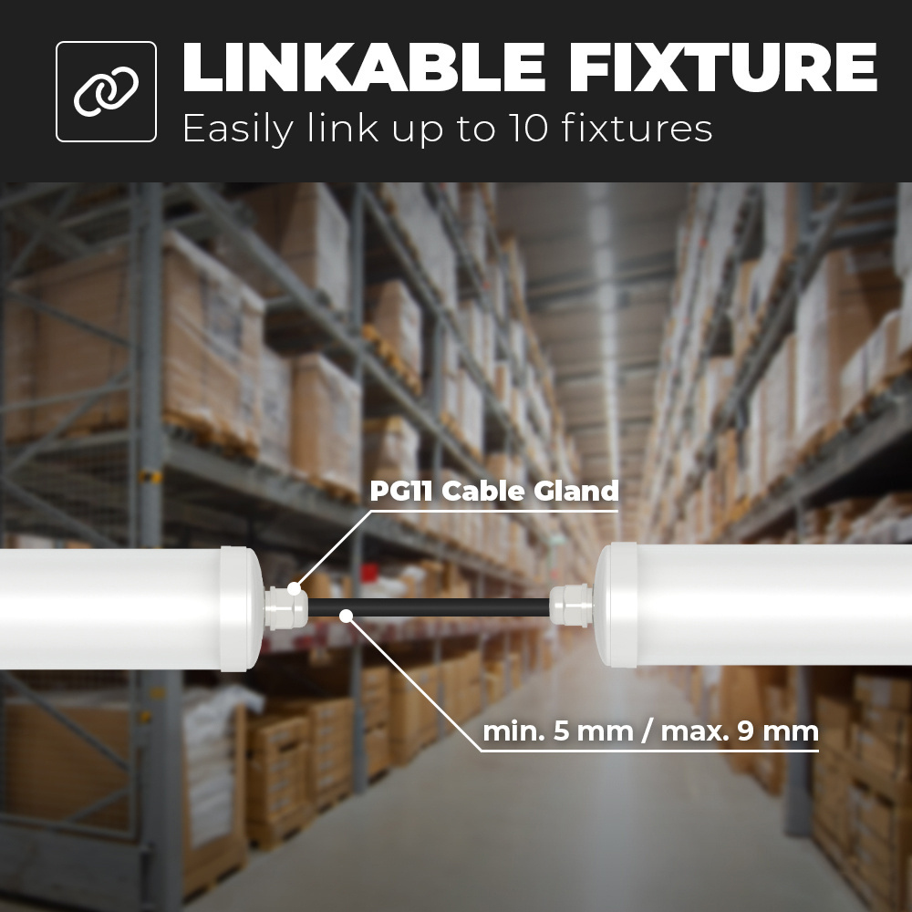 Diese Lampen können bis zu einem Maximum von 10 verknüpfbar sein. So kannst du ganz einfach bis zu 10 Lampen mit einem Schalter steuern. Ideal in einer Fabrikhalle, einem Lager oder einem Büro.