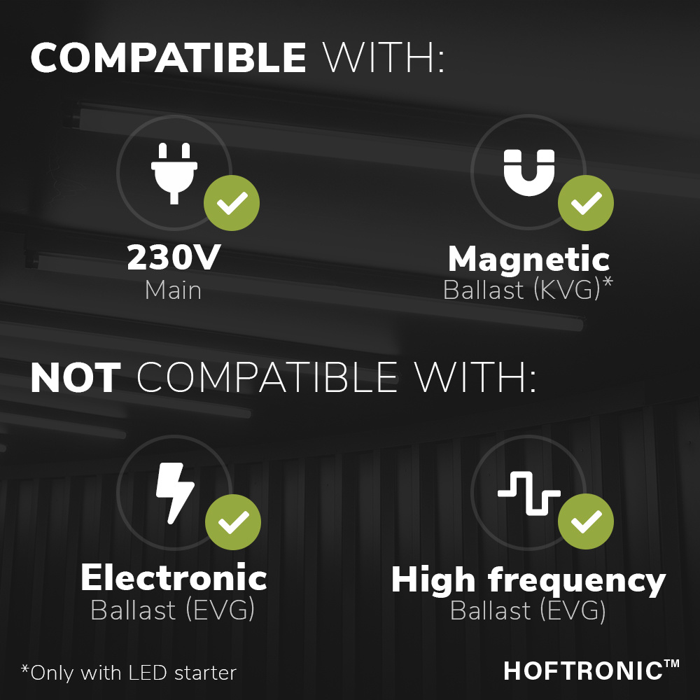 Die LED Röhre leuchtet mit 150 Lumen pro Watt, was effizient ist und mehr Licht mit weniger Strom erzeugt. Dadurch sparst du 80 % im Vergleich zu alter Leuchtstoffröhrenbeleuchtung.