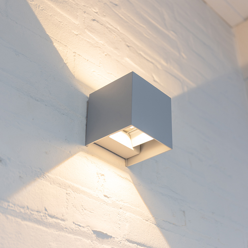 Kansas LED-Wandleuchte - 7W 560lm - 3000K warmweiß - IP65 wasserdicht - Up Down Licht - Grau - Würfel - Für innen und außen - Außenleuchte