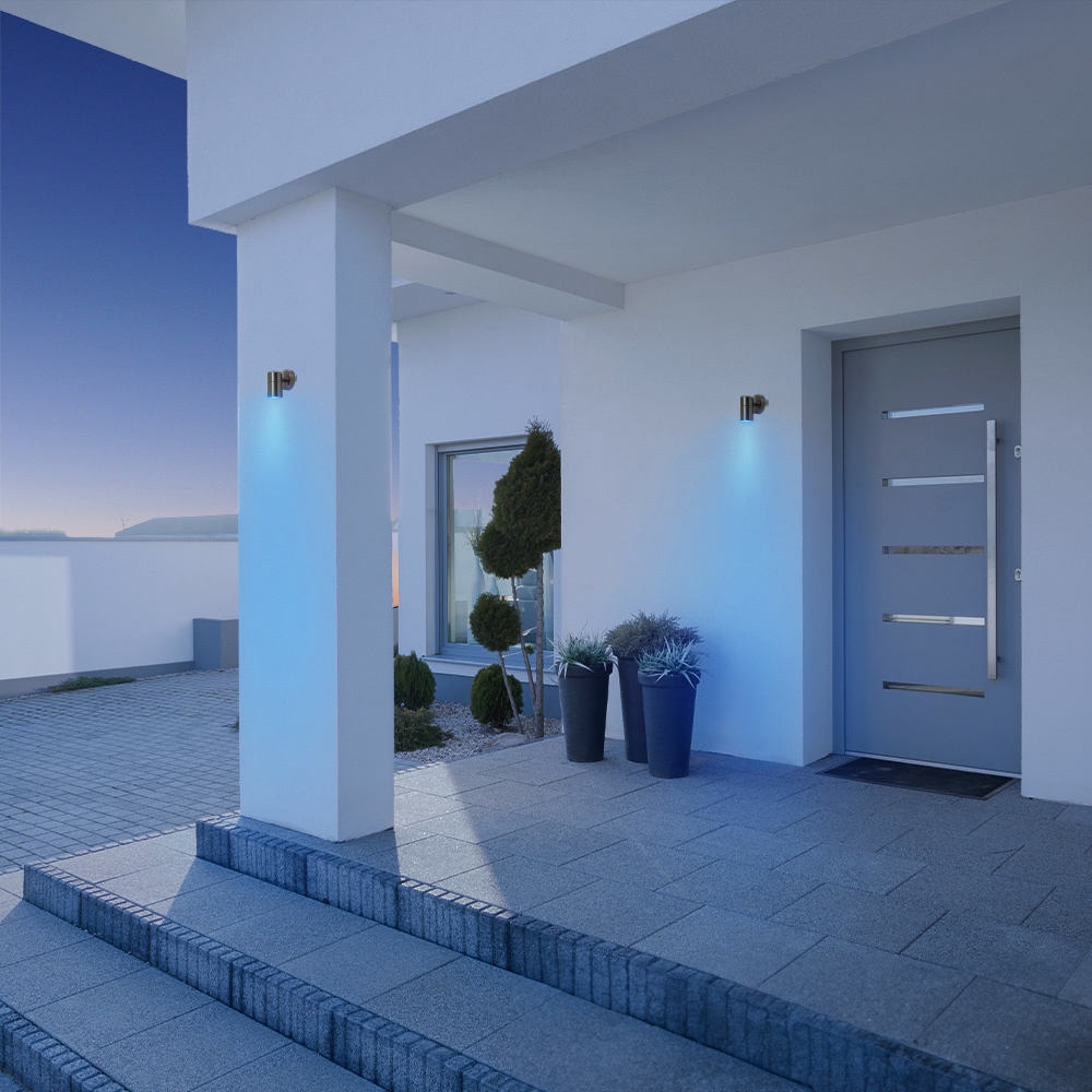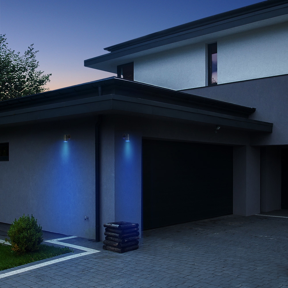 Wenn du die Lampe mit Google Home, Amazon Alexa oder Siri verbindest, kannst du sie auch mit deiner Stimme steuern. Die Wandleuchte ist IP44 wasserdicht und mit einer feuchtigkeitsbeständigen und UV-beständigen AKZO-Nobel-Pulverbeschichtung versehen. Das sorgt für guten UV-Schutz und ist feuchtigkeitsbeständig, sodass du keine Verfärbungen bei längerer Sonneneinstrahlung und kein Ablösen der Beschichtung bei feuchten Bedingungen hast.