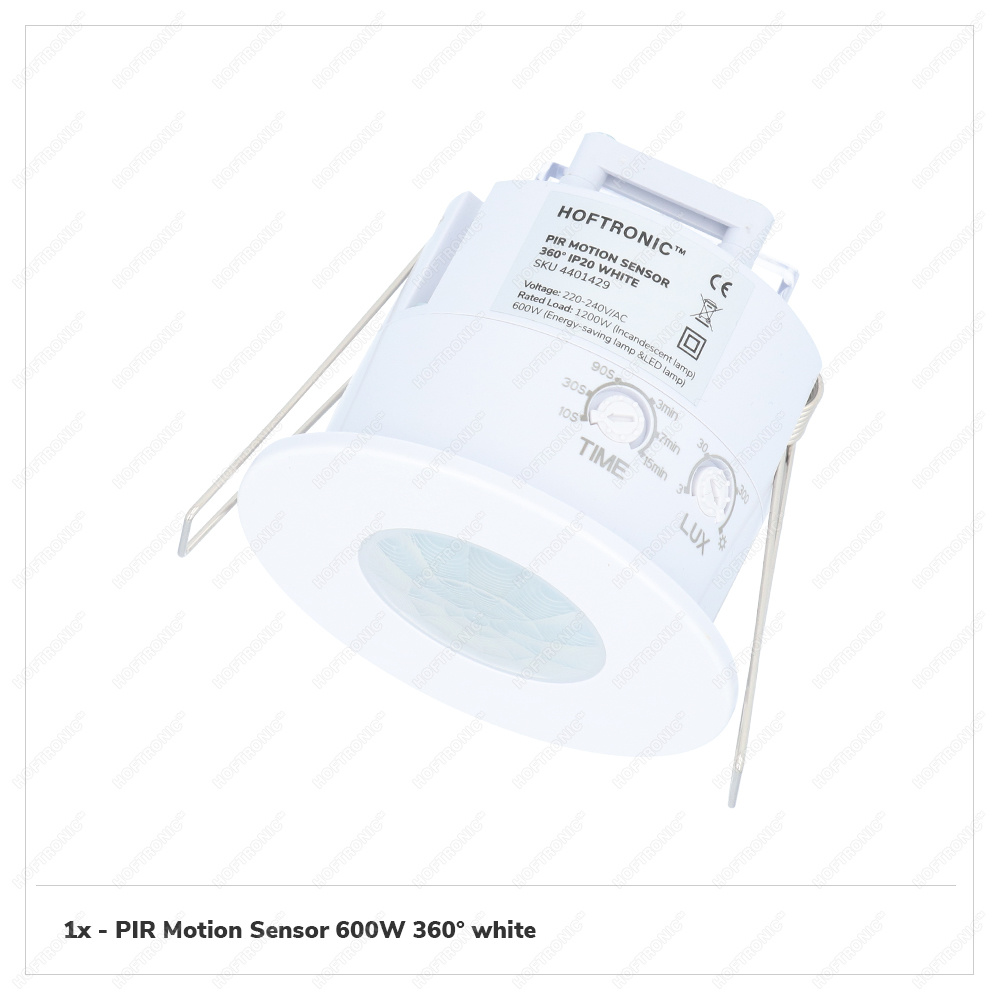 Dieser weiße PIR-Einbau-Bewegungsmelder mit Dämmerungsschalter lässt sich leicht an der Decke montieren. Sie können bis zu 600 W LED-Beleuchtung an den Sensor anschließen. Der Melder hat einen Erfassungswinkel von 360 Grad und einen Erfassungsbereich von 6 Metern. Dadurch erkennt dieser Sensor alle Bewegungen in einem Raum. Ideal für Büros und Garagen. Sowohl der Dämmerungsschalter als auch der Bewegungsmelder sind voll einstellbar.