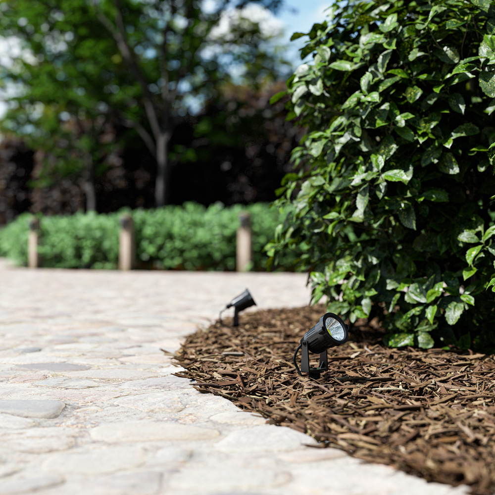 Da diese Gartenstrahler voll verstellbar sind, können Sie präzise Lichtakzente setzen. Denken Sie an die Beleuchtung eines Baumes, eines Strauches, einer Pflanze oder eines Zaunes.