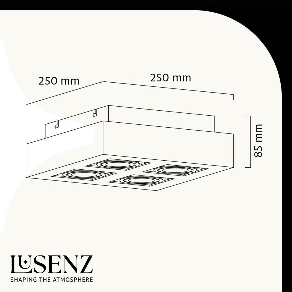 Pollux nero II II - Quadratische 4-flammige Deckenleuchte mit schwenkbaren Strahlern