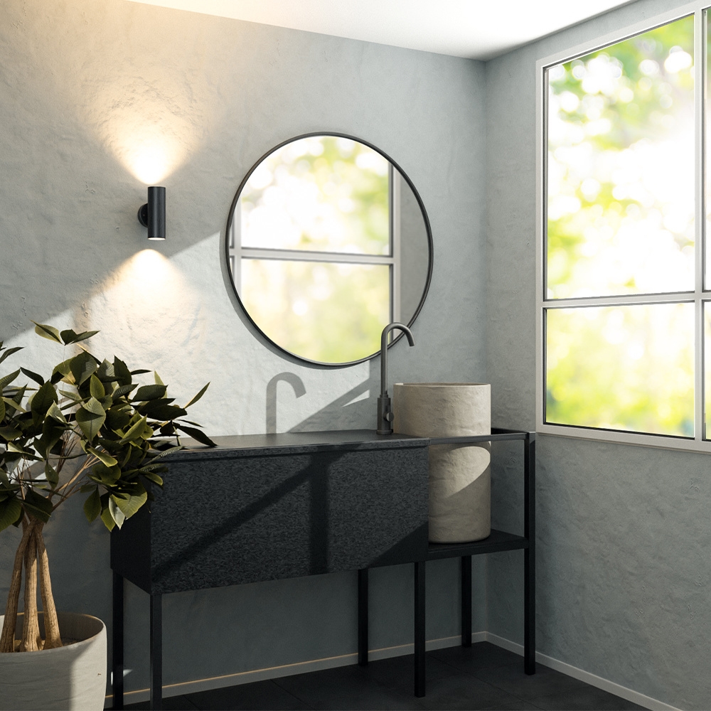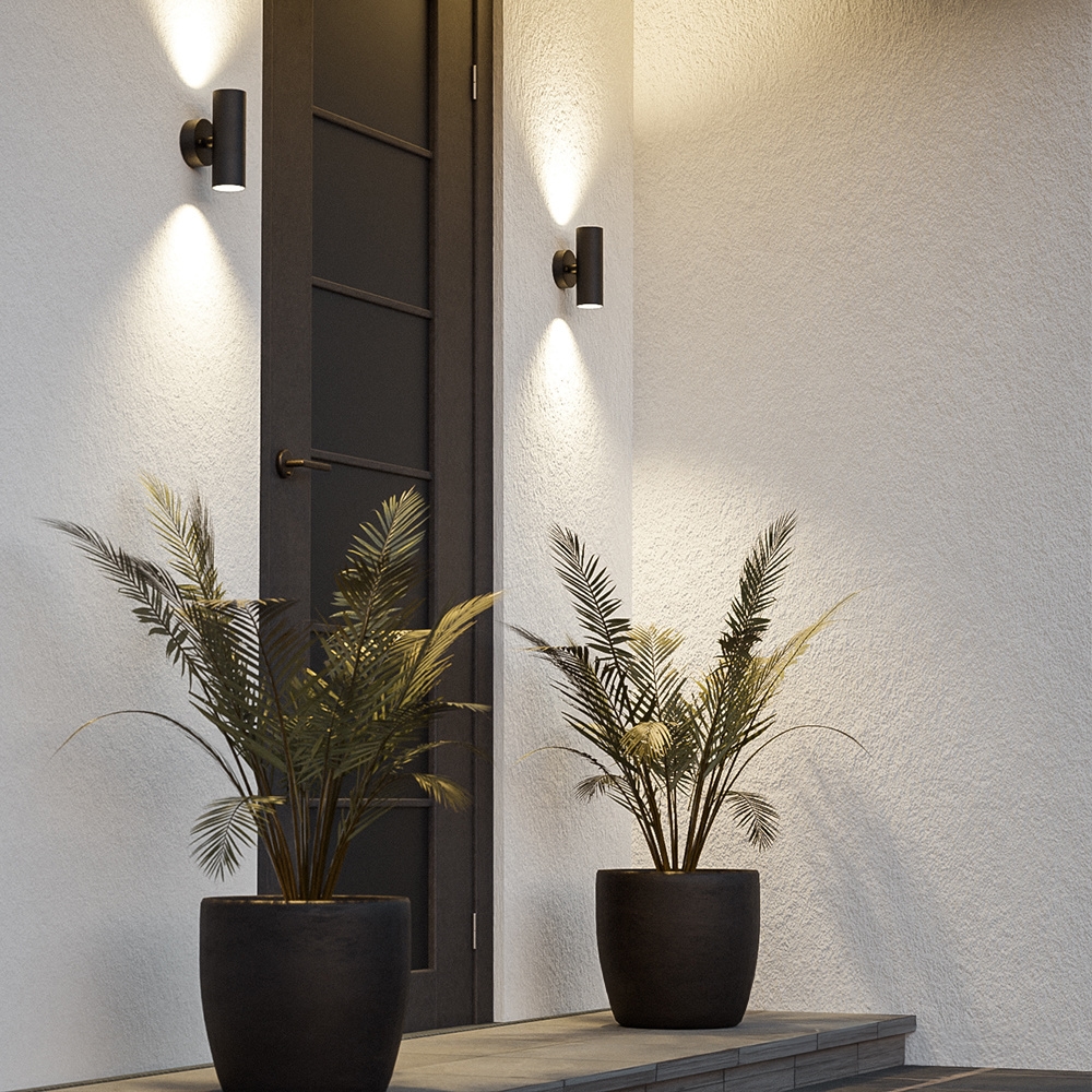 Die Blenda ist eine moderne Up & Down Light Wandlampe für außen. Ihre elegante zylindrische Form macht diese Außenleuchte zu einem echten Blickfang. Du dimmst die Lampe ganz einfach mit der mitgelieferten Fernbedienung. So kannst du die gewünschte Atmosphäre leicht selbst einstellen. Die Wandlampe Blenda ist in Schwarz gehalten und wird mit zwei dimmbaren GU10 LED-Spots geliefert, die ein warmweißes Licht von 2700K ausstrahlen.